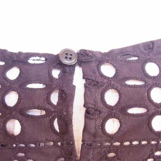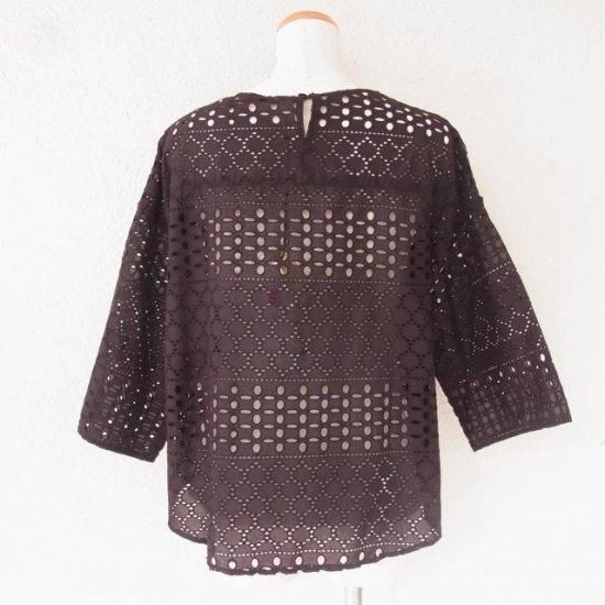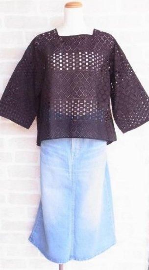 PT オーガニックコットンボーダー刺繍フレアブラウス