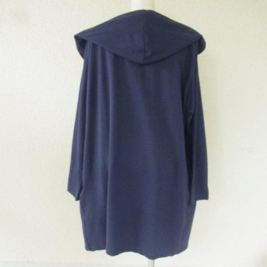 前開きで羽織るタイプのガーディガンは、フード付きのスポーティな印象。