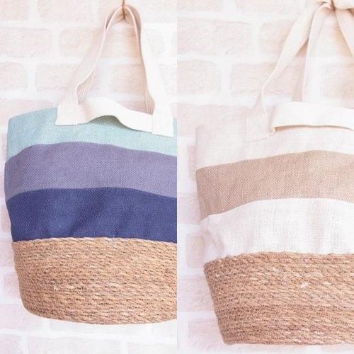 ジュート、ホグラ、コットン3種の素材を組み合わせたしましまトートのシリーズ。